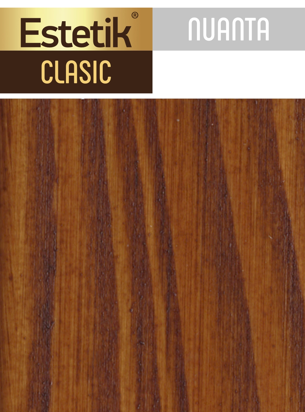 Estetik Clasic este o lazura lemn profesională, pe bază de ulei sintetic, îmbogățită cu aditivi și nanopigmenți anorganici, concepută pentru protecția și decorarea lemnului la interior și exterior. Formula sa cu penetrare crescută oferă o protecție eficientă de pana la 10 ani împotriva radiațiilor UV, umidității și factorilor meteorologici.
