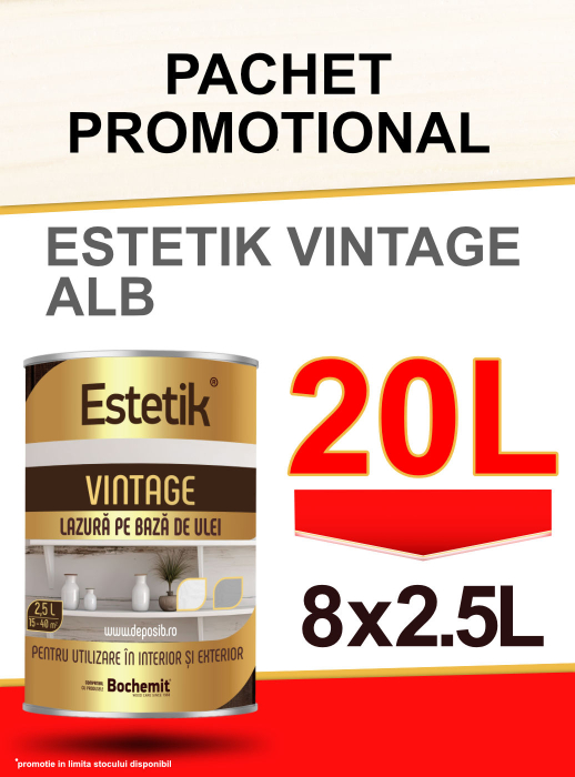PACHET PROMO Lazura lemn ESTETIK VINTAGE ALB, 8x2.5L